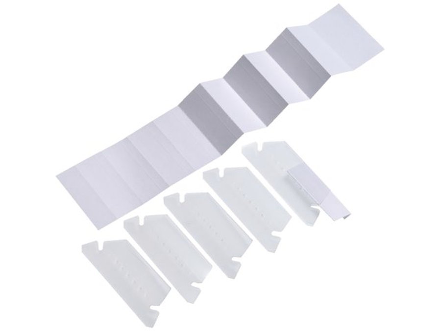 Skirtukai kartotekiniams vokams 50mm 25vnt. Plastikiniai, skaidrūs. Plotis 50 mm. Skirtukai su lapeliu užrašams.