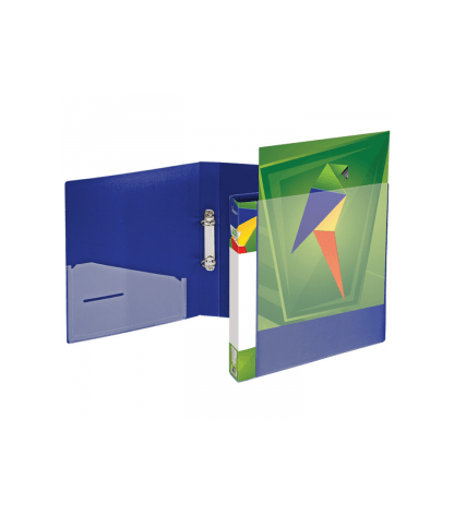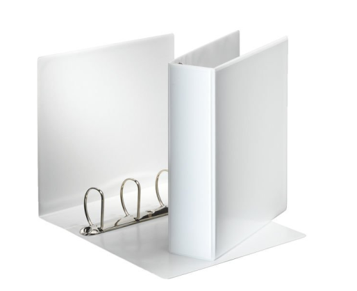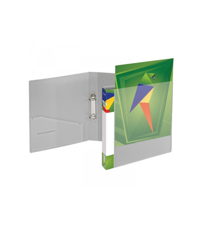 Su 4 žiedų įsegimo mechanizmu; Žiedo diametras 60mm; pagamintas iš kartono, dengto balto plastiko plėvele iš abiejų pusių; Kišenėlės ant nugarėlės ir viršelio skirtos individualiai informacijai;