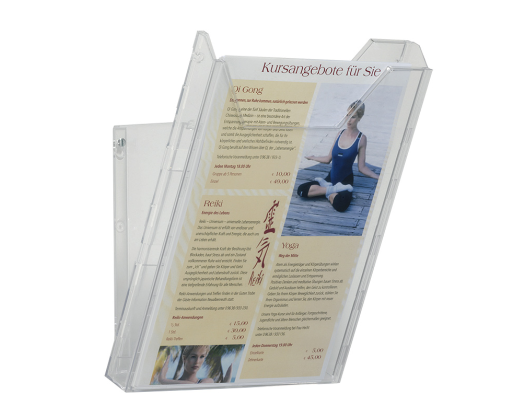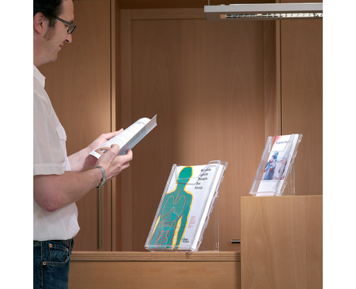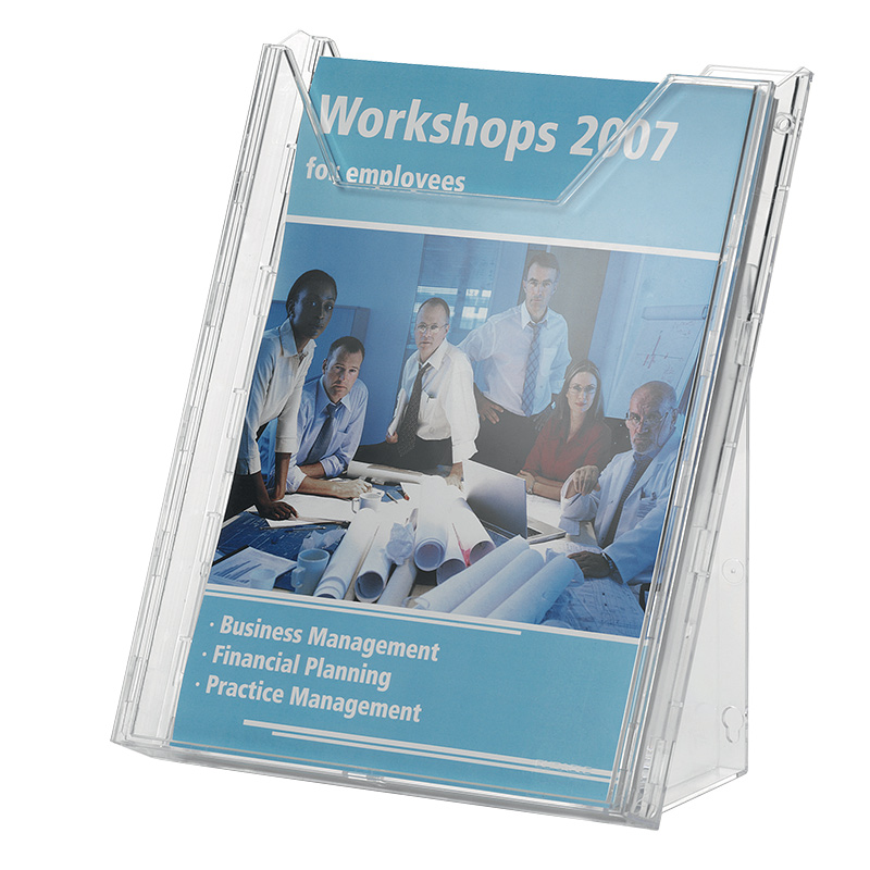 Skirtas informaciniams lankstukams sudėti. Stovas yra pastatomas ant stalo arba kabinamas and sienos. Susideda iš atskirų dalių. Lengvai praplečiama iki norimo lišenėlių skaičiaus jungiant papildomas kišenėles. Lengvai išvalomas. Pagamintas iš skaidraus plastiko. Skaidrus, A4 formato. 1 dalis. Yra skirtos specialios kišenės 200-02501. Matmenys: Stovo 291 x 242 x 162 mm (A x P x G), sienelės 300 x 242 x 152 mm (A x P x G)Prekės parametrai