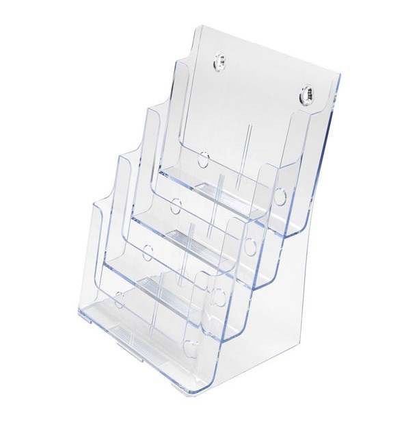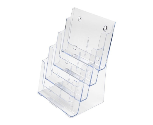 Universalus keturių pakopų bukletų laikiklis A5 (172mm X 254mm). Pastatomas arba pakabinamas.