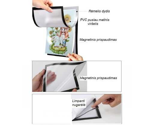Lipnus magnetinis rėmelis plakatams ar informacijai pateikti.