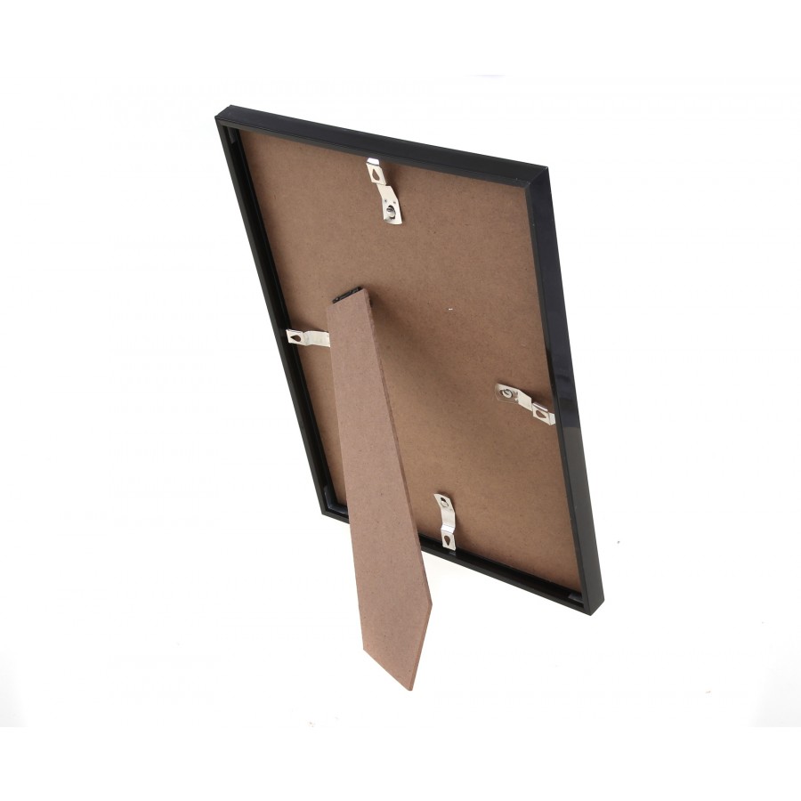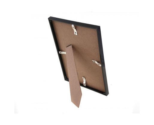 Rėmelis A4, plastikinis, siauras, tamsiai pilkos spalvos. Su atramine kojele.