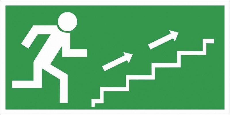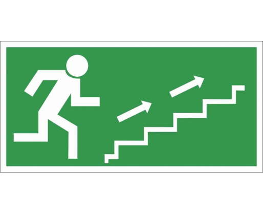 - Informacinis lipdukas ''AVARINIS IŠĖJIMAS LAIPTAIS AUKŠTYN Į DEŠINĘ '' ženklas 75x150mm