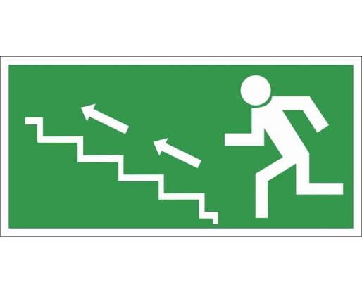 - Informacinis lipdukas ''AVARINIS IŠĖJIMAS LAIPTAIS AUKŠTYN Į KAIRĘ'' ženklas 75x150mm