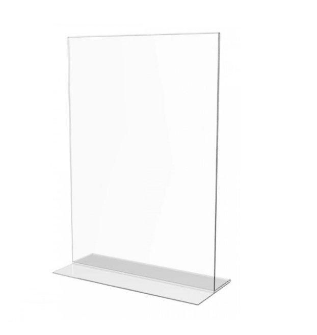 Informacinis stovelis A6. T formos informacinis stovelis. Pagamintas iš 2 mm skaidraus akrilo.