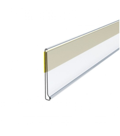 Perlenktas horizontalus vokelis su papildomu užlenkimu apačioje, skirtas apsaugoti kainų etiketę. Kainos etiketė įdedama iš šono.