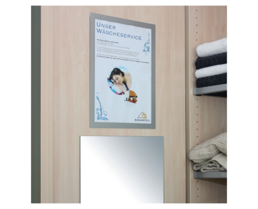 • Priklijuojami rėmeliai informacijai skelbti • Galima rinktis A4 arba A3 formatą • Lengvai pakeičiama medžiaga • Tinka lygiems stikliniams paviršiams