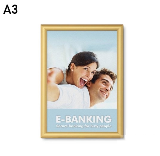 - Pakabinamas informacinis rėmelis aukso spalvos atlenkiamais kraštais, A3 25mm