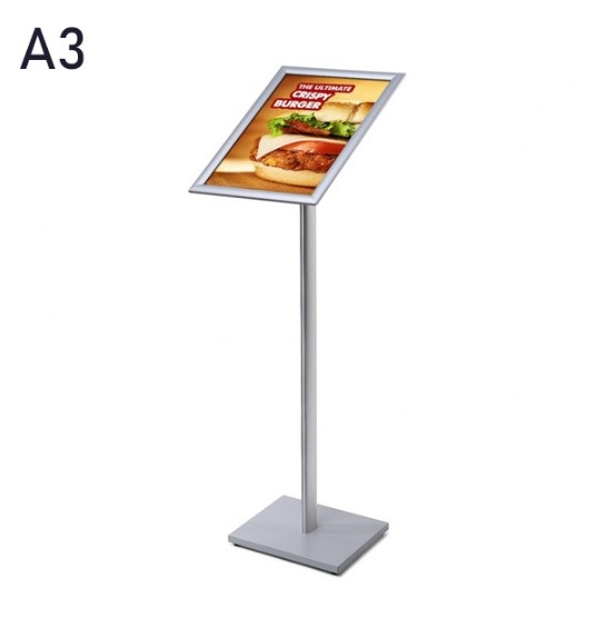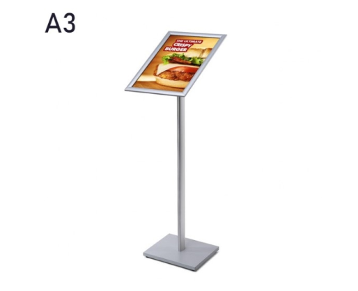 Vienpusis informacinis stovas su aliuminio rėmeliu stačiais kampais plakatams eksponuoti.