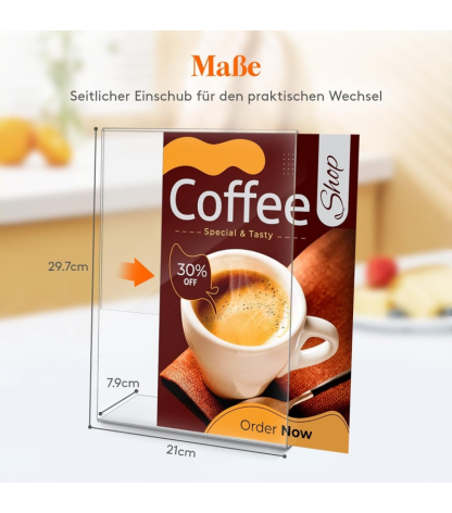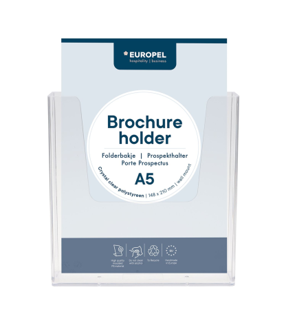 •Informacinis stovelis , T-Standard, for a representative presentation, protecting against dirt and dust •This acrylic sign frame is a double-sided display •Designed to change your leaflets out by slipping the paper through the bottom or sides. •Material: Clear Acrylic. • Size: A6 ( 8x14,8x11cm)