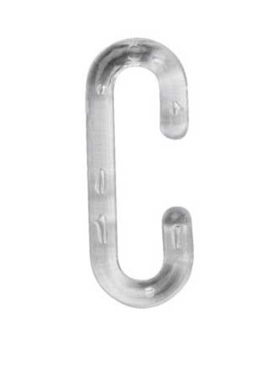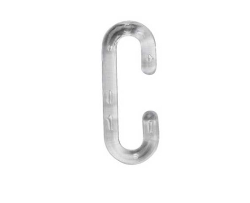 C formos plastikinis kabliukas, skirtas kabinti plakatus ir kitą vaizdinę informaciją prekybos vietose.