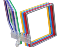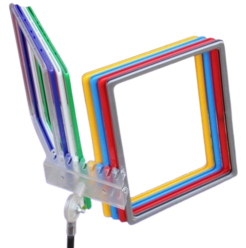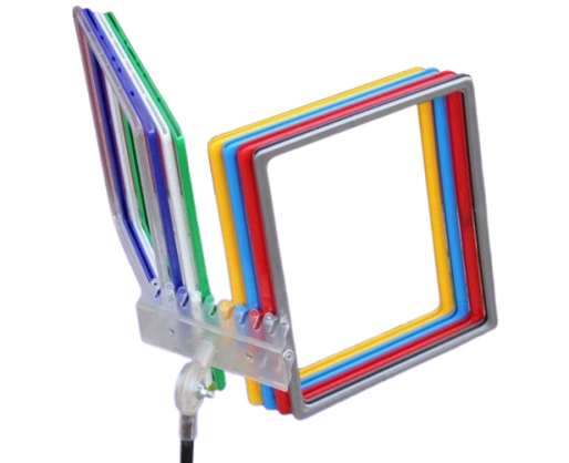 Rėmelių vartyklė A4 su metaliniu pagrindu. Vartyklę sudaro 10 A4 formato rėmelių su apsauginiais vokeliais.