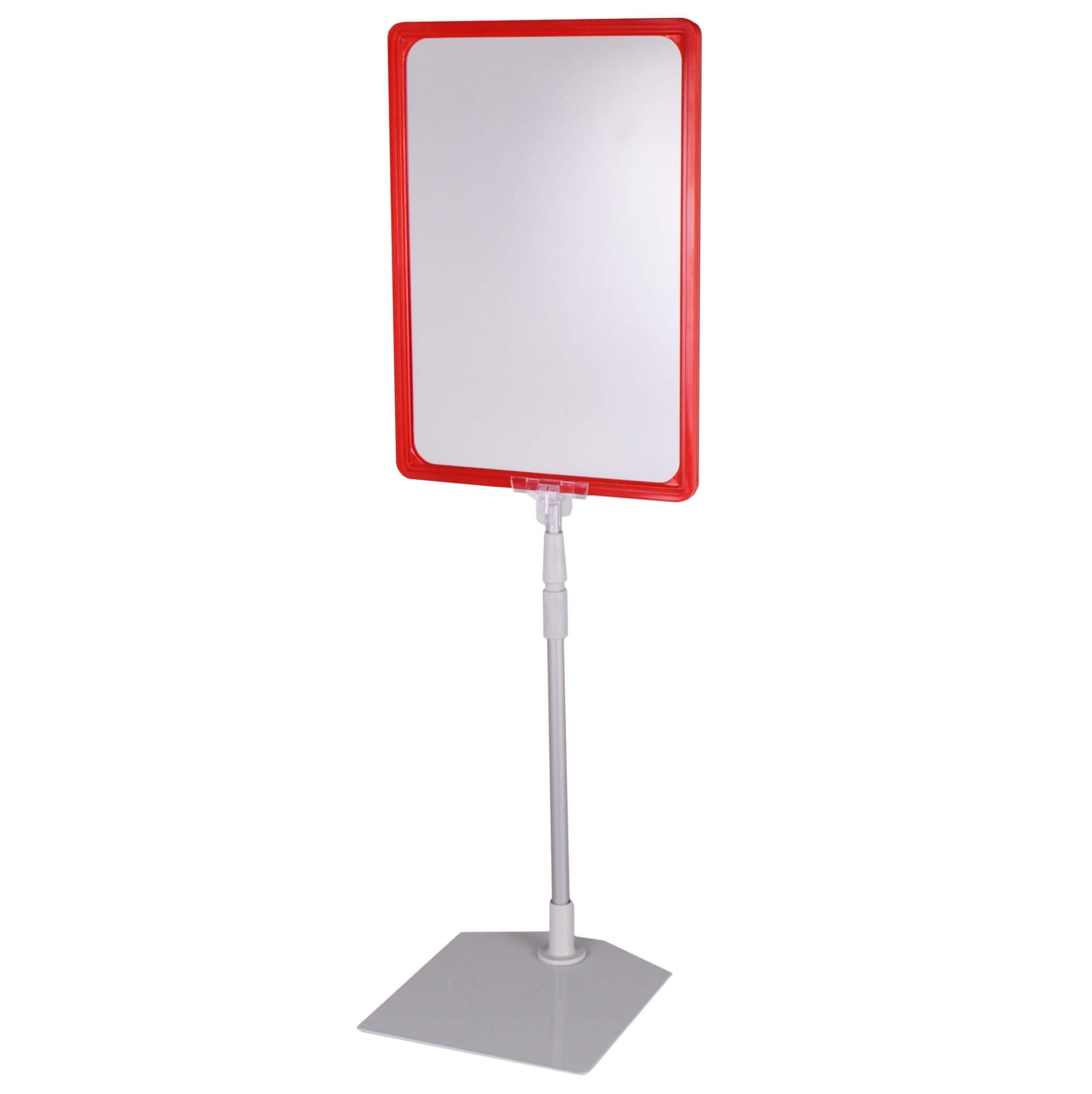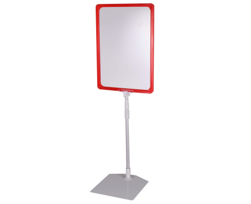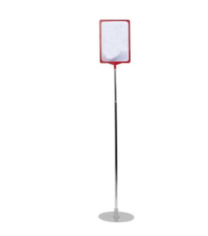 Teleskopinis stovas su plastikiniu rėmeliu, apsauginiu voku ir plastikiniu stačiakampiu pagrindu. Skirtas informacijai apie kainas pateikti prekybos vietose. Plastikinis rėmelis gali būti eksponuojamas ir vertikaliai, ir horizontaliai.