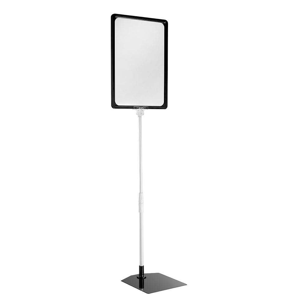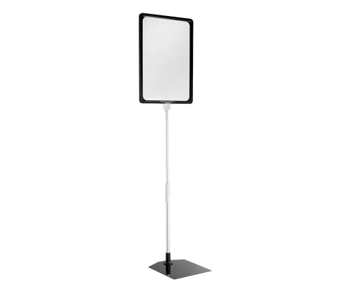 Informacinis stovas, A4 formato rėmas, teleskopinis aliuminio stovas: galimas aukštis nuo 30 iki 60 cm; galimos įvairios rėmelio spalvos. Standartiškai komplektuojamas pilkos saplvos plastikinis rėmas (vertikalus) ir metalinis pilkas pagrindas (16x18cm).