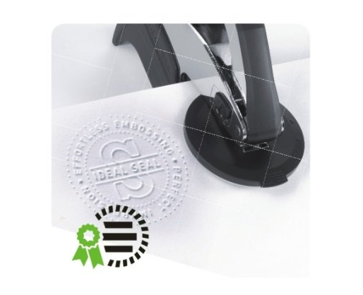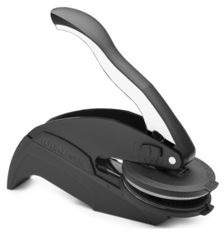 Reljefinis,įspaudžiamas antspaudas IDEAL, juodos spalvos metalinis korpusas su juodo plastiko detalėmis, spaudo dydis 25x51 mm. Įspaudžiamas į popierių iki 200g.