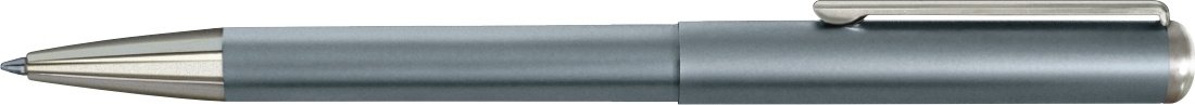 Pilkos spalvos metalinio korpuso tušinukas su chromo spalvos detalėmis. Keičiama šerdelė (juodos arba mėlynos spalvos) Gumelės matmenys: 33mm x 8mm; tekstas: 2 eilutės. Su dėžute.