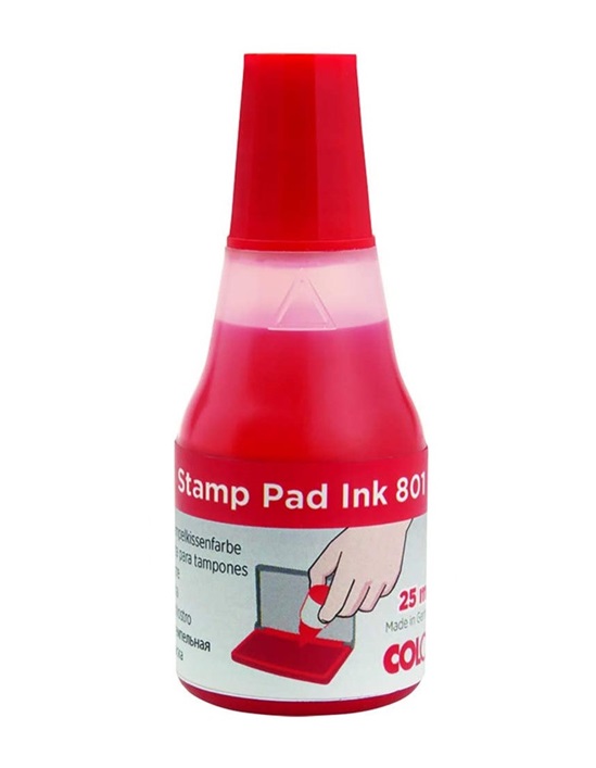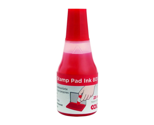 Tušas antspaudui Colop, raudonas. Vandens pagrindu pagamintas tušas antspaudų pagalvėlėms. Talpa 25 ml.