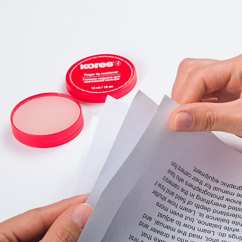 Palengvina dokumentų vartymą. Nepalieka žymių. Natūralaus kvapo. Nekenkia nagams ir odai. Talpa 15 ml. Dėžutėje.