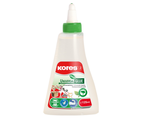 - Universalūs stiprios fiksacijos ekologiški klijai KORES 125ml ECO, skaidrūs