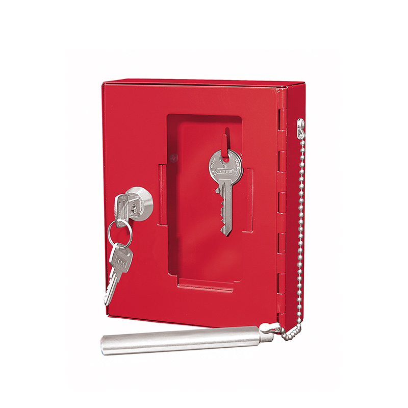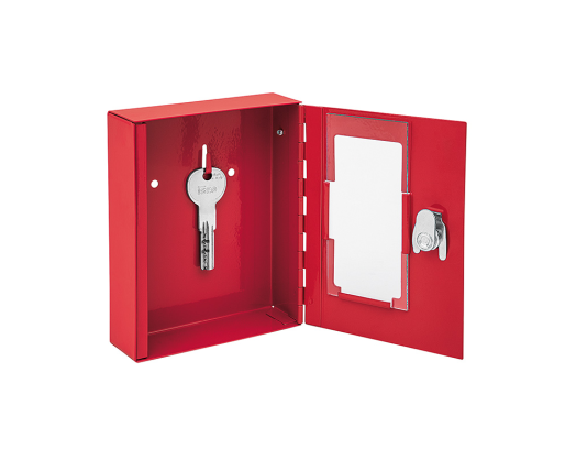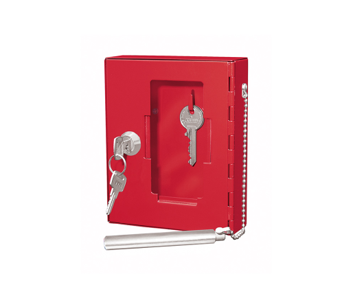 • Raudona spalva dažyta, prie sienos tvirtinama dėžutė skirta apsaugoti avarinio atidarymo raktui. Raktas pasiekiamas sudaužius apsauginį stikliuką.