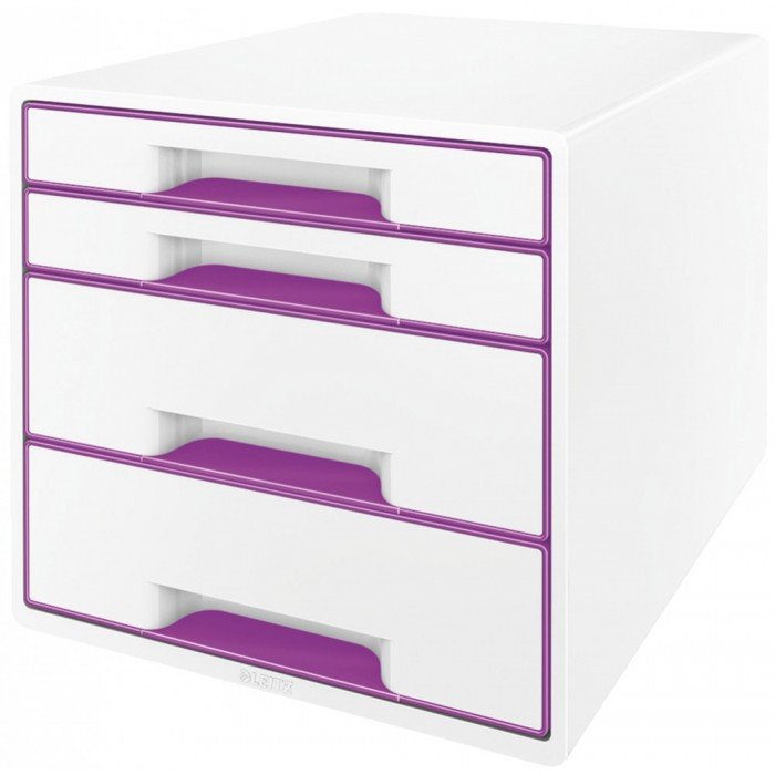- Dokumentų spintelė Leitz WOW, 4 stalčių, violetinė/balta