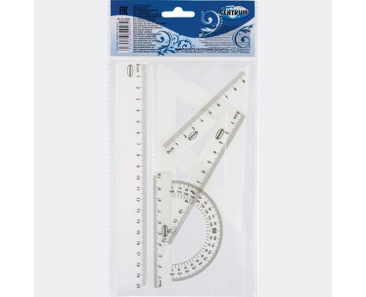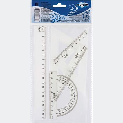 - Braižybos rinkinys CENTRUM liniuotė 20 cm, 2 trikampės liniuotės, matlankis