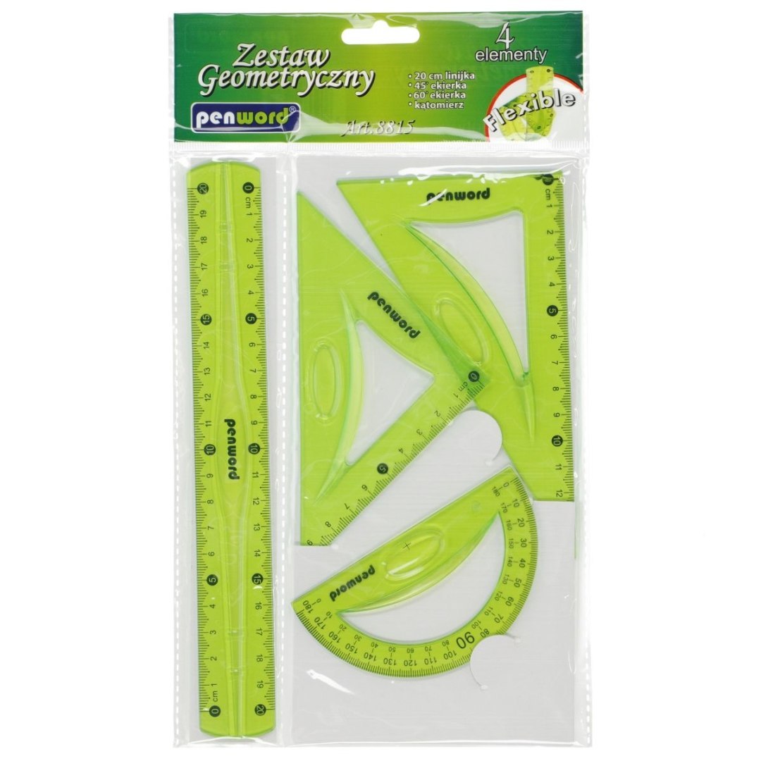 Liniuočių rinkinys PENWORD 4vnt. 8815 Flexi/20cm skaidraus plastiko, įvairių spalvų, lankstus