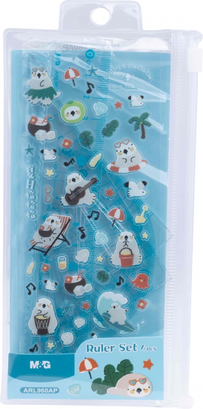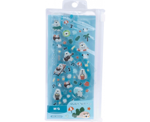 Liniuočių rinkinys 4vnt. Cha Cha tvirto skaidraus plastiko su dėklu + lipdukai M&G ARL960AP