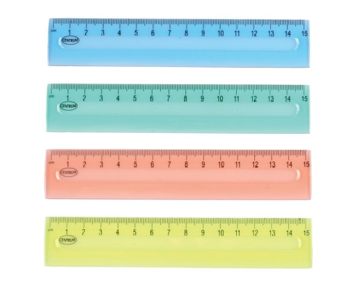 - Liniuotė plastikinė, įvairių spalvų 15 cm.