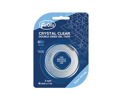 - Dvipusė gelinė lipni juosta Forofis, 2 mm storio, 18mm x 1m, skaidri