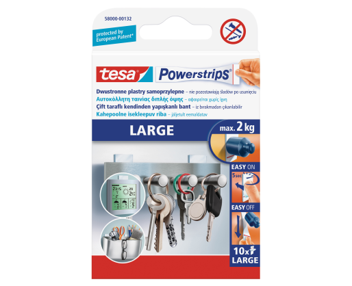 Dvipusio lipnumo nuimamos juostelės TESA Powerstrips, didelės, 10vnt.