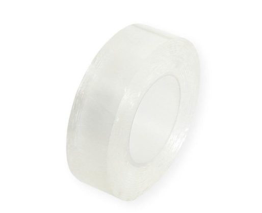 skaidri dvipusė juosta. Tinka lygiems, neporėtiems paviršiams. Puikiai tinka kabinti plakatus, paveikslėlius, lentynas, pakabas, kabliukus, tvirtinti laidus, išmaniuosius telefonus ir kt.. Lengvai nusiima ir nepalieka pėdsakų. Alternatyva kaiščiams, vinims, varžtams. Pagaminta iš tvirtos akrilo gumos. Atspari vandeniui.