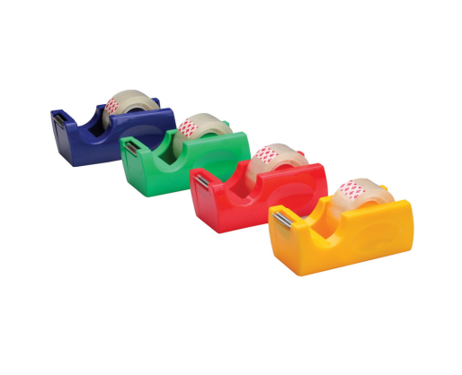 Lipni juostelė su dėkliuku. Laikiklis su juostelės pjautuvu. Skaidrios spalvos. Dėkliuko spalvos (mėlyna, raudona, žalia, geltona)