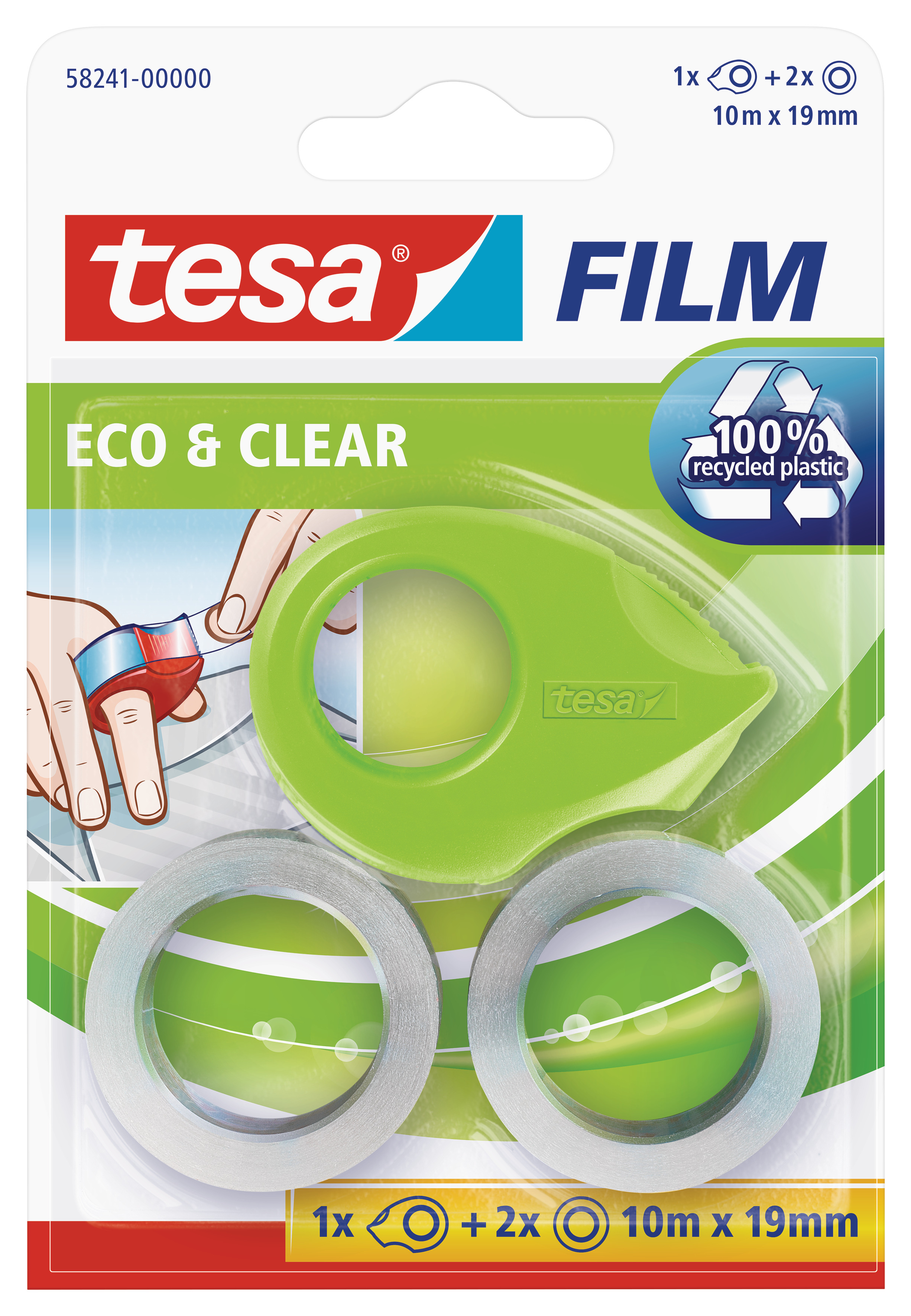Lipnios juostelės dėklas TESA Mini Tape Dispenser eco su 2vnt. ekologiškų ir skaidrių lipnių juostelių 19mm x 10m