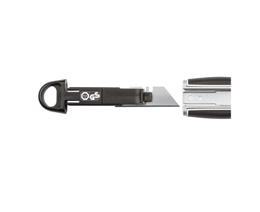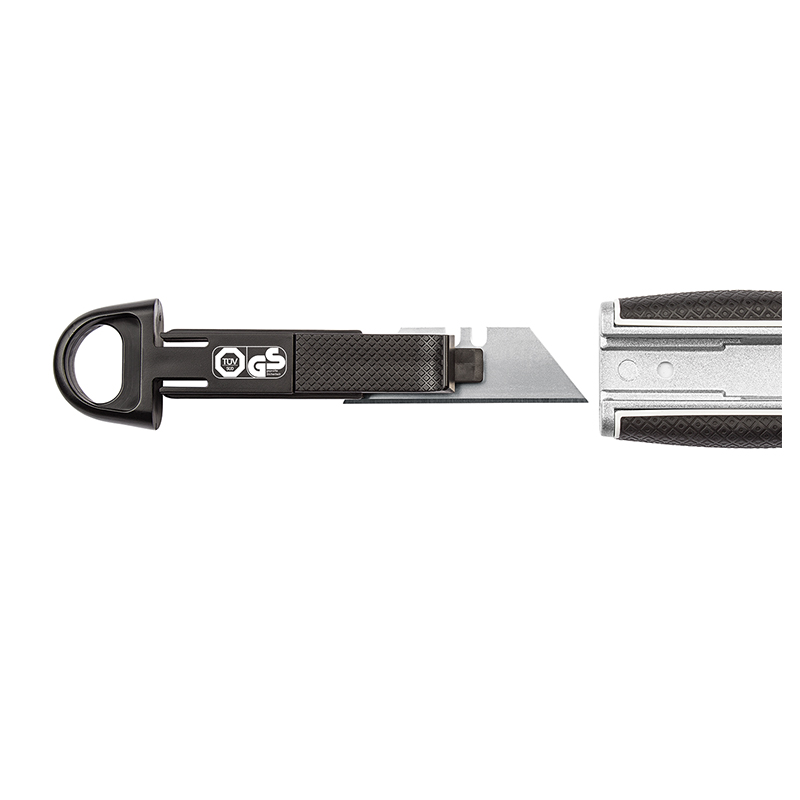 •Lengvo metalo korpusu apsaugota geležtė su gumine rankena