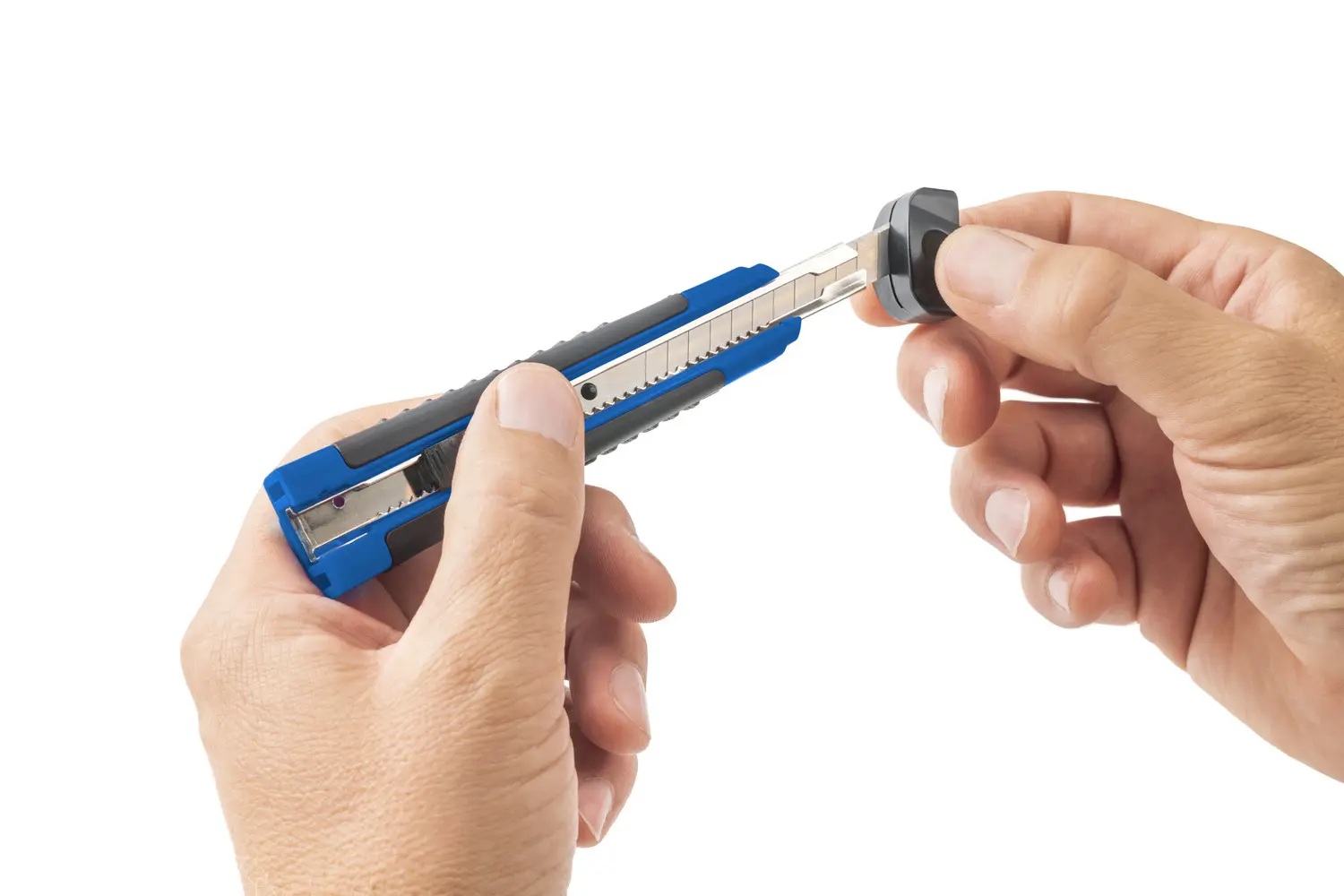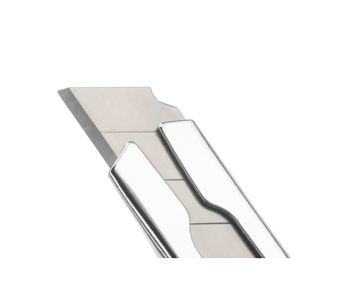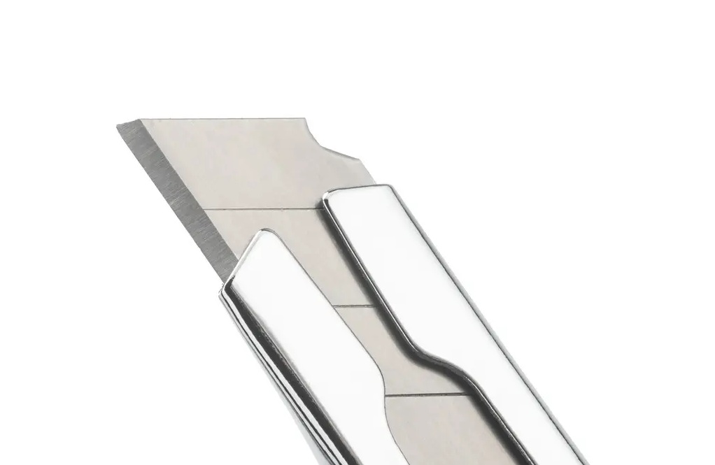 Fiksuojami nerūdijančio plieno segmentiniai ašmenys užtikrina tikslius pjūvius – tiesiog pastumkite ašmenis į priekį, kol jie automatiškai užsifiksuos.