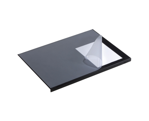 Kokybiškas patiesalas, skirtas patogiam rašymui. Skaidrus pakeliamas viršus. Su kampiniu atvartu, fiksavimui prie stalo. Neslidus, juodos spalvos. Matmenys: 65 x 50 cm. Dėžutėje 5 vnt.