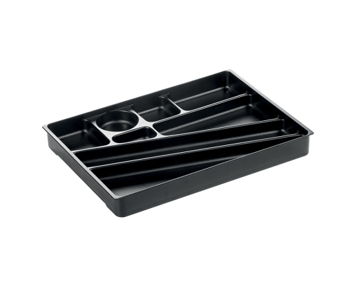 Pagamintas iš perdirbto polistereno. Į skirtingus skyrius galima susidėti: USB, rašymo priemones, kompaktinius diskus ir pan. Matmenys: 240 x 36 x 340 mm.Prekės parametrai