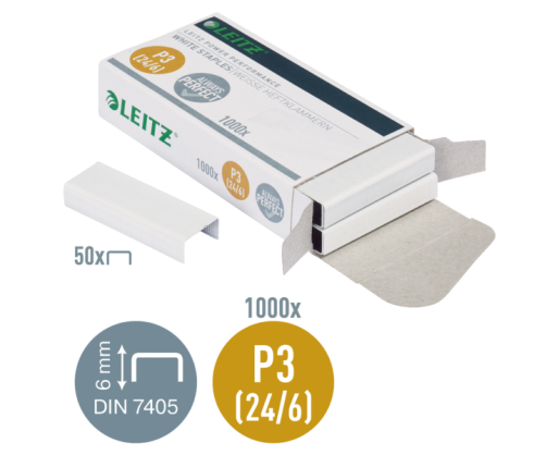 - Sąsagėlės Leitz P3 Nr.24/6 1000/vnt, baltos spalvos