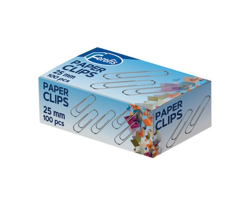 Metalinės sąvaržėlės; metalo spalvos; 25mm dydžio; 100 sąvaržėlių dėžutėje.