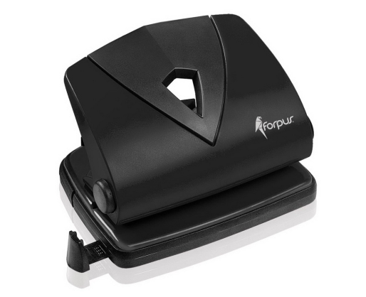 Korpusas plastikinis, pramušimo mechanizmas metalinis. Skylmuša muša dvi standartinio dydžio skylutes 80mm atstumu. Su reguliojamu laikikliu popieriui. Pramuša iki 30 lapų. Juodos spalvos.