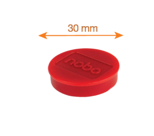 Magnetai NOBO, diametras 30 mm, pakuotėje 4 vnt., raudonos spalvos. Vienas magnetas gali atlaikyti iki 6 lapų.