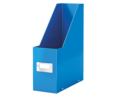 Stovas dokumentams Leitz Click & Store WOW, sulankstomas, pagamintas iš kieto kartono, apklijuotas PP medžiaga; nugarėlės plotis 95mm; šone vieta etiketei užkišti; matmenys 310x245x95mm