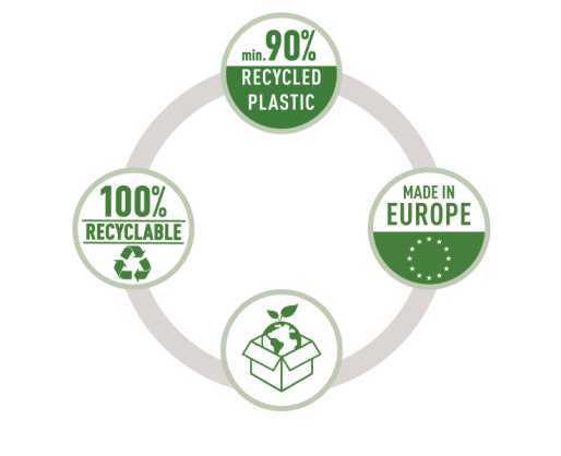 •Pagamintas iš ne mažiau kaip 90 % perdirbto (po vartojimo) plastiko;