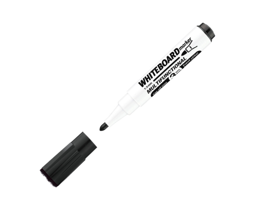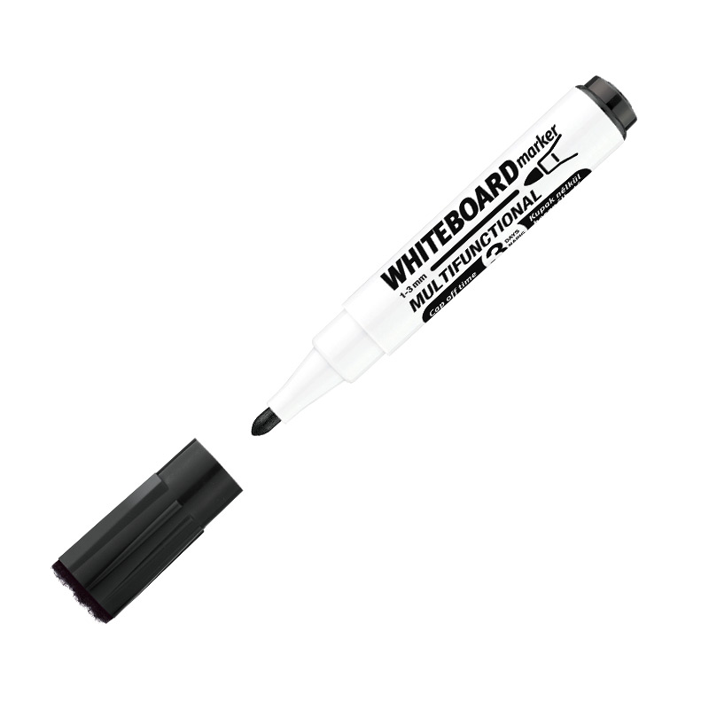Juodos spalvos. Apvali galvutė. Brėžio storis 3 mm. Multifunkcionalus: žymeklis baltai lentai, trintukas, magnetinis kamštukas, kuris prilimpa prie magnetinės rašomosios lentos. Dėžutėje 10 vnt.Prekės parametrai