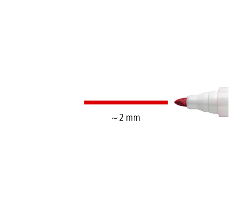 Apvali galvutė, brėžio storis 2 mm, neuždžiūna paliktas atidarytas keletą dienų (ISO 554), greitai džiūna ant paviršiaus, lengva papildyti