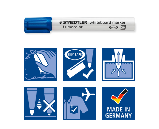 Žymeklis baltai lentai STAEDTLER LUMOCOLOR 351, 2 mm, MĖLYNA