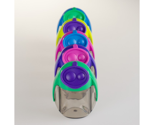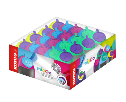 - "MIGOO" plastikinis dvigubas drožtukas, 5 mišrios spalvos plastikinėje dėžutėje