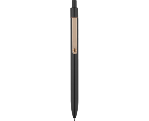 Stilingas aliuminio rašiklis su matine apdaila ir auksiniu segtuku.