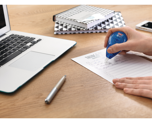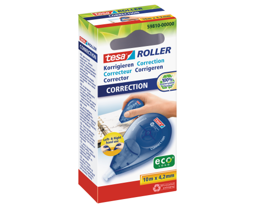 Žmonės nėra tobulybės, todėl klaidų pasitaikys visada. Tačiau turėdami Tesa® Roller Correction ecoLogo ® vienkartinį ritininį korektorių, per kelias sekundes klaidas paversite nematomomis, Tiesiog prispauskite ritininį korektorių prie popieriaus ir braukdami priklijuokite baltą lipnią korekcinę juostelę, kuri iš karto švariai paslėps bet kokią rašant padarytą klaidą taip, kad taisymas nekristų į akis. Ritininis korektorius pagamintas iš 100% perdirbto plastiko, turi ergonomišką rankenėlę kairiarankiams ir dešiniarankiams. Ritinėlyje yra 10 4,2 mm pločio plėšimui atsparios PET korekcinės juostelės, kuri puikiai uždengia ankstesnį tekstą.